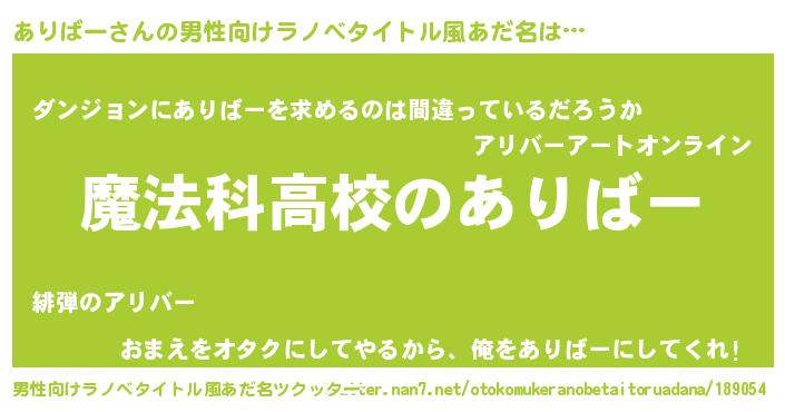 | 女子向けラノベタイトル風あだ名 | 『ありばーなんてお断りですっ。』 |