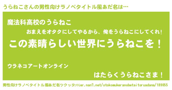 | 意味不明あだ名 | 『住所不定無職うらねこ(50歳)』 |