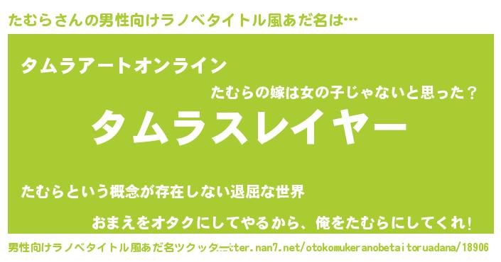 | 肩書あだ名 | 『たむら少佐』『たむら御曹司』 |