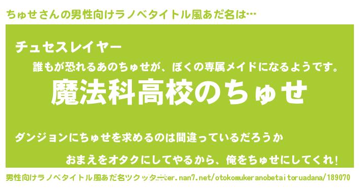 | 女子向けラノベタイトル風あだ名 | 『ちゅせアンティーク』 |