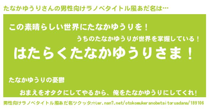 | 意味不明あだ名 | 『住所不定無職たなかゆうり(59歳)』 |