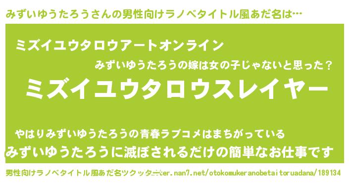 | ヒーロー風カッコイイあだ名 | 『スーパーミズイユウタロウ』 |