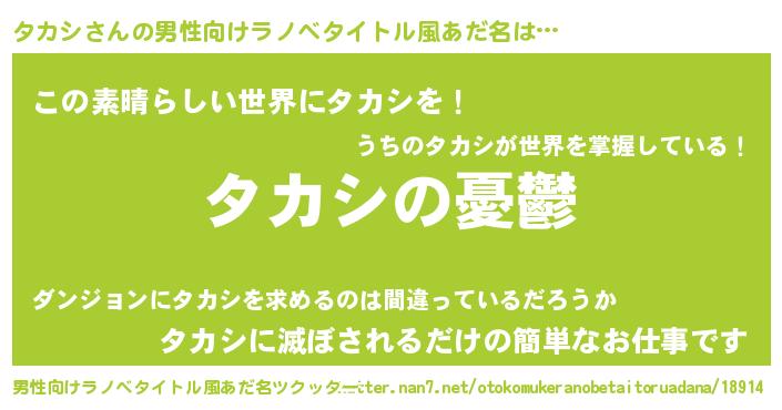 | 女子向けラノベタイトル風あだ名 | 『タカシ姫と円卓の騎士』 |