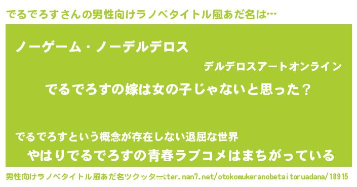 | 女子向けラノベタイトル風あだ名 | 『でるでろす様がみてる』 |
