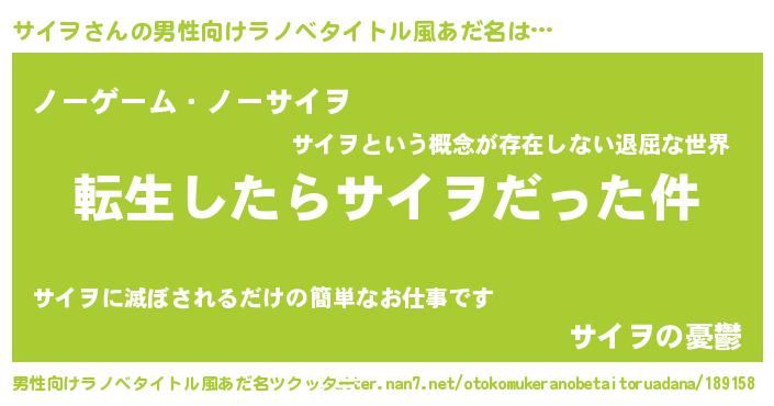 | ヒーロー風カッコイイあだ名 | 『友情の使者サイヲ』『スーパーサイヲ』 |