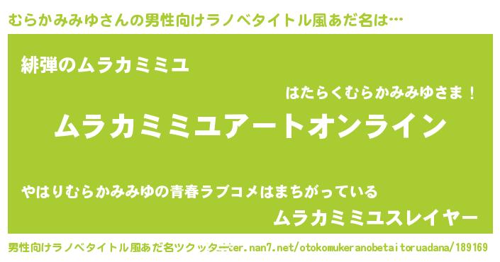 | 女子向けラノベタイトル風あだ名 | 『誰かこのむらかみみゆを説明してください! ~契約から始まるウェディング~』 |