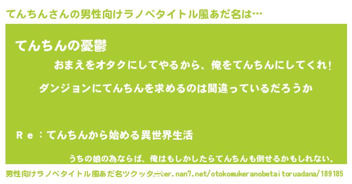 | 意味不明あだ名 | 『とにかく怪しいてんちん』 |