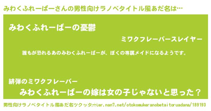 | 意味不明あだ名 | 『永久保存みわくふれーばー』 |