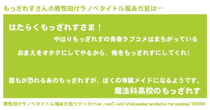 | 女子向けラノベタイトル風あだ名 | 『もっざれす恋絵巻』 |
