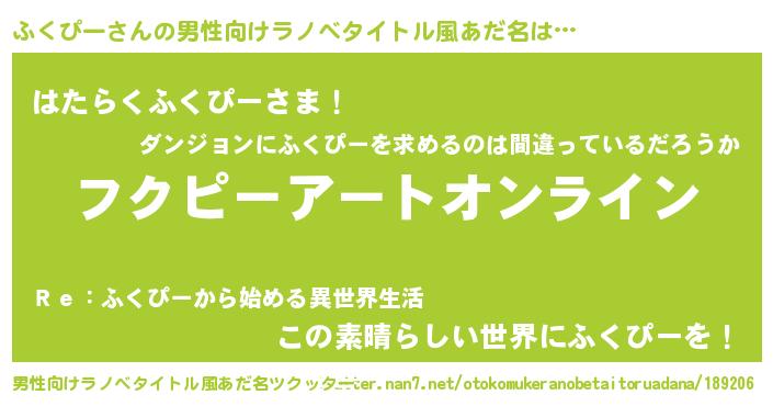 | 女子向けラノベタイトル風あだ名 | 『ふくぴー姫と円卓の騎士』 |