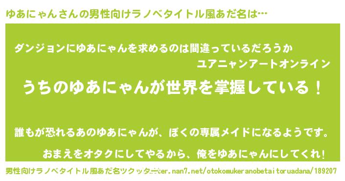 ゆあにゃんさんの男性向けラノベタイトル風あだ名をツクッター!