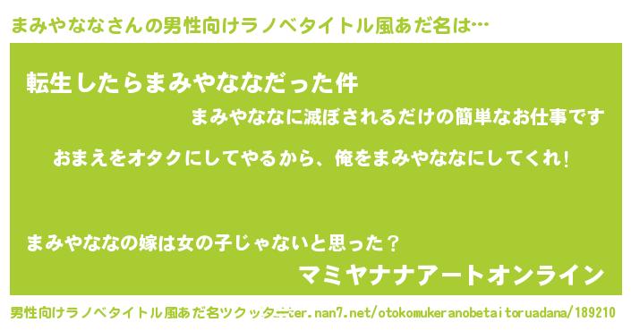 | 胡散臭い通販商品みたいなあだ名 | 『100人中100人が認めたマグネット磁石…その名も「まみやなな」』 |