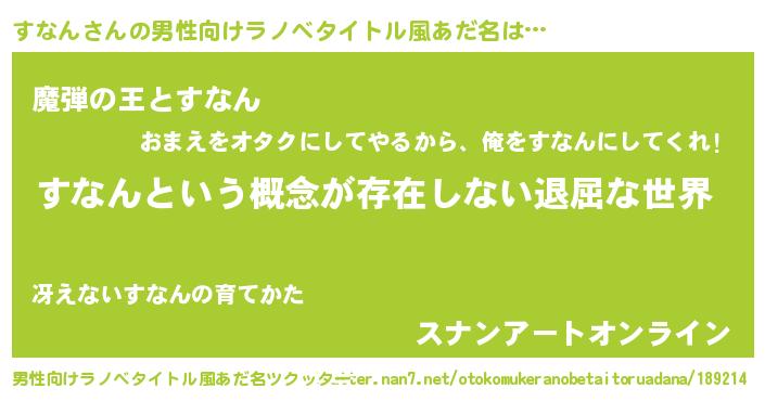 | 胡散臭い通販商品みたいなあだ名 | 『来世でも幸せになれる水素水…その名も「すなん」』 |