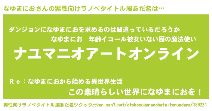| 意味不明あだ名 | 『ペロリンなゆまにお』『自称なゆまにお』 |