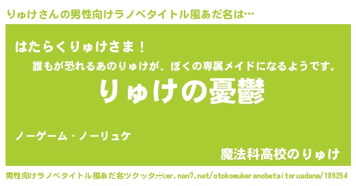 | 女子向けラノベタイトル風あだ名 | 『(仮)りゅけのやんごとなき事情』 |