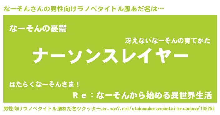 | 意味不明あだ名 | 『エリンギ科なーそん属』『自称なーそん』 |