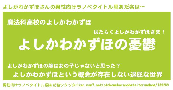 | 女子向けラノベタイトル風あだ名 | 『(仮)よしかわかずほのやんごとなき事情』 |