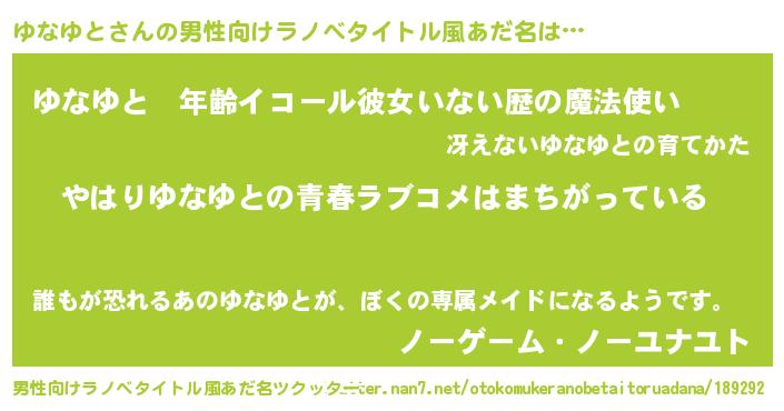 | 女子向けラノベタイトル風あだ名 | 『ゆなゆと伯爵の花嫁』 |