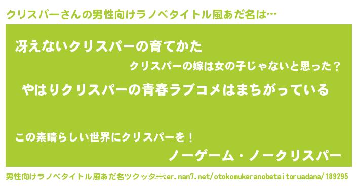 | 胡散臭い通販商品みたいなあだ名 | 『世界が平和になる高級そうな壺…その名も「クリスパー」』 |