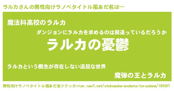 | 胡散臭い通販商品みたいなあだ名 | 『必ず成功する水晶球…その名も「ラルカ」』 |