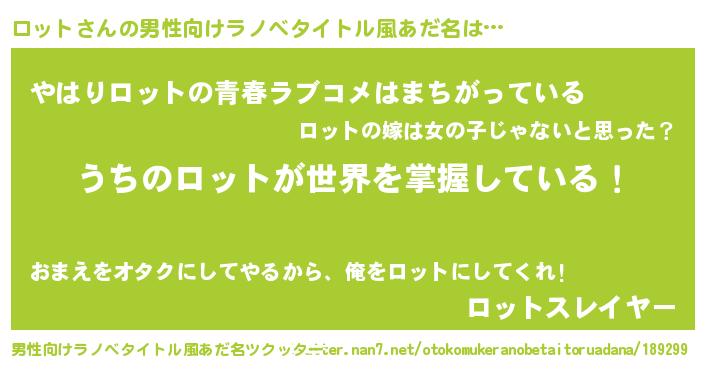 | 胡散臭い通販商品みたいなあだ名 | 『運命の人と巡り会える高級そうな絵画…その名も「ロット」』 |
