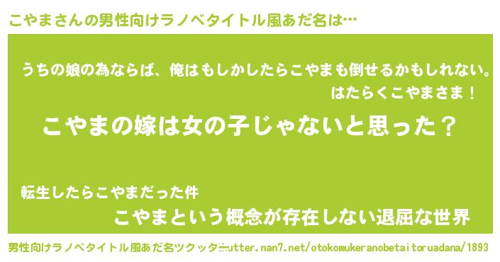 | 女子向けラノベタイトル風あだ名 | 『こやま様がみてる』『こやまの婚約者』 |