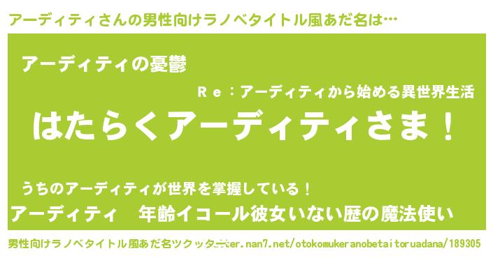| 胡散臭い通販商品みたいなあだ名 | 『必ず成功するブレスレット…その名も「アーディティ」』 |