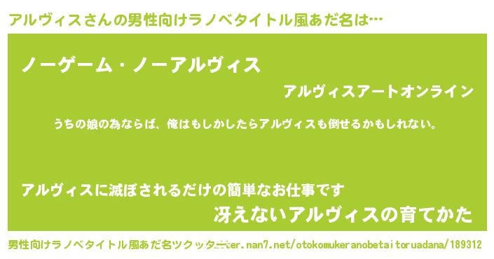 | 意味不明あだ名 | 『アルヴィスフォーエバー』 |