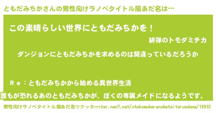 | 女子向けラノベタイトル風あだ名 | 『ともだみちかは平凡を望む』 |