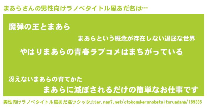 | 女子向けラノベタイトル風あだ名 | 『まあらの雑貨屋さん』 |