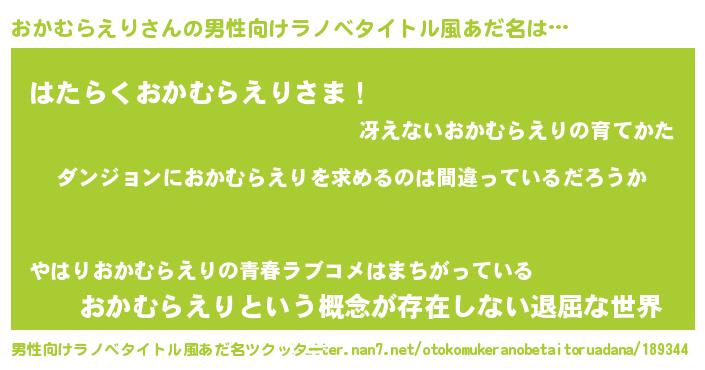 | 女子向けラノベタイトル風あだ名 | 『おかむらえりは平凡を望む』 |