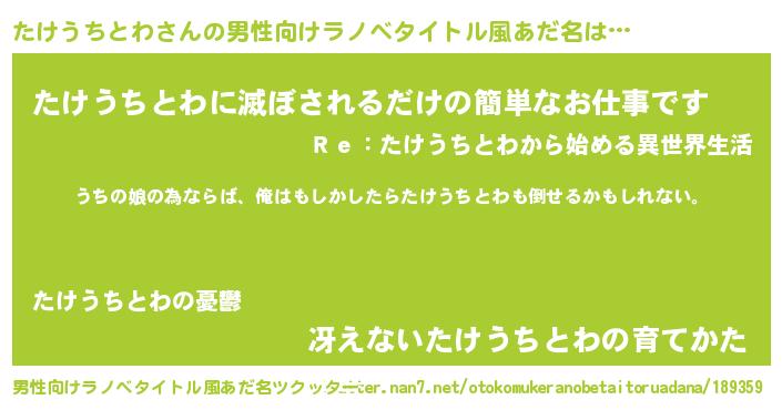 | 女子向けラノベタイトル風あだ名 | 『たけうちとわの婚約者』 |