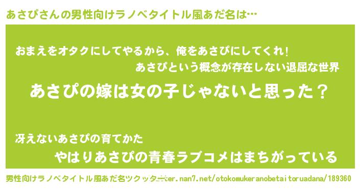 | 萌えアニメ | 主人公(あさぴ)のあだ名『 あささん』 |