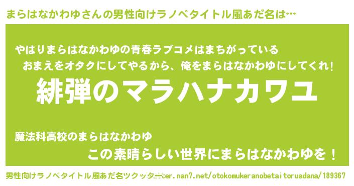 | 女子向けラノベタイトル風あだ名 | 『シンデレラまらはなかわゆ家の靴箱館』 |