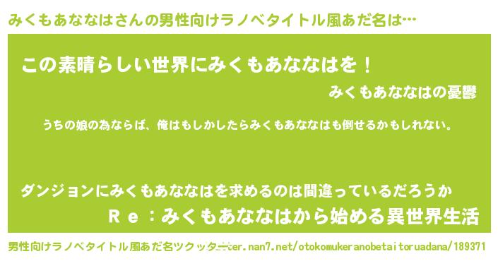 | ファンタジー風あだ名 | 『エターナルミクモアナナハー』 |