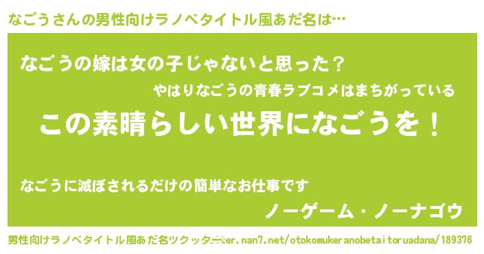 | 胡散臭い通販商品みたいなあだ名 | 『あなたにだけ特別に提供する100年もののヴィンテージワイン…その名も「なごう」』 |