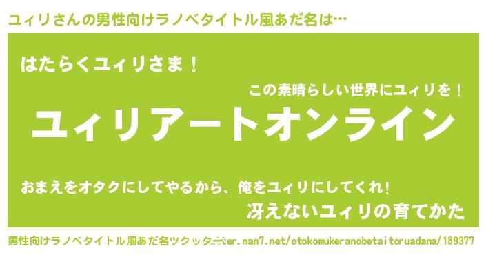 | 胡散臭い通販商品みたいなあだ名 | 『億万長者になれるブレスレット…その名も「ユィリ」』 |
