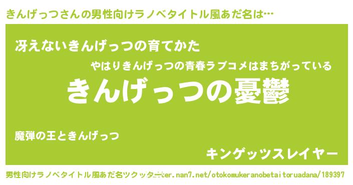 | 胡散臭い通販商品みたいなあだ名 | 『必ず成功する霊験あらたかなお札…その名も「きんげっつ」』 |