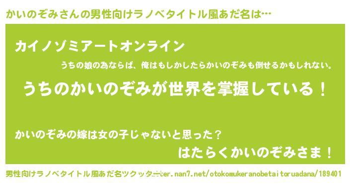 | ヒーロー風カッコイイあだ名 | 『スーパーカイノゾミ』『魔戒騎士カイ』 |