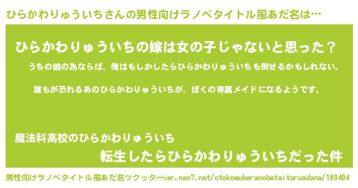 | 女子向けラノベタイトル風あだ名 | 『ひらかわりゅういちの契約王妃』 |