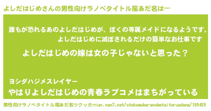 | 女子向けラノベタイトル風あだ名 | 『よしだはじめ様がみてる』 |