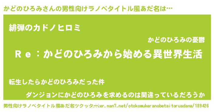 | 女子向けラノベタイトル風あだ名 | 『かどのひろみストレイドッグス』 |