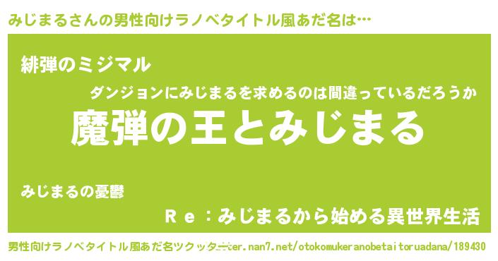 みじまるさんの男性向けラノベタイトル風あだ名をツクッター!