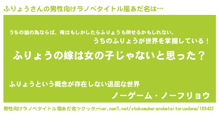 | 女子向けラノベタイトル風あだ名 | 『ふりょうの卵を拾いまして』 |