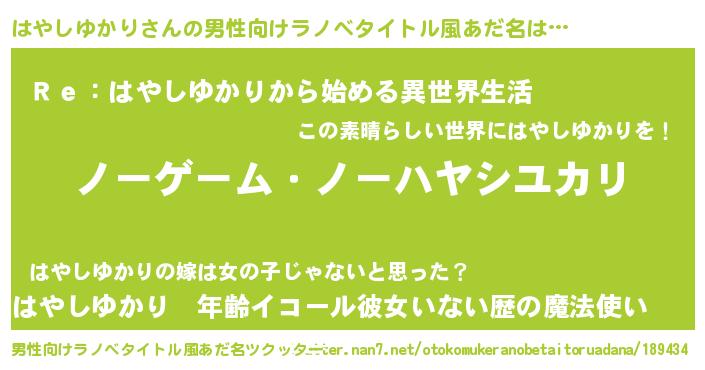 | 女子向けラノベタイトル風あだ名 | 『死神はやしゆかりの再婚』 |