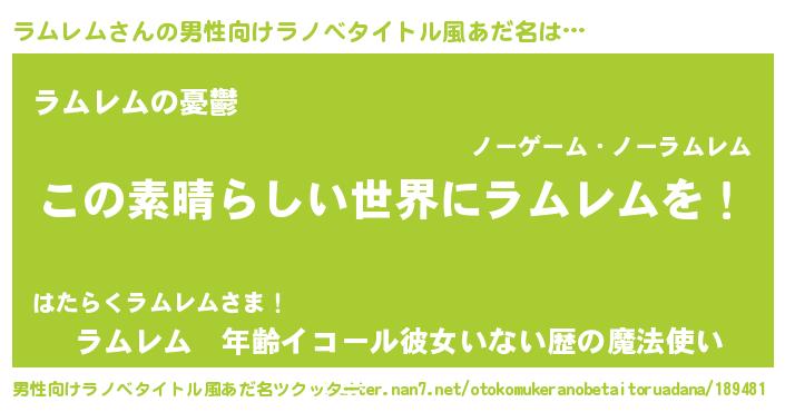 ラムレムさんの男性向けラノベタイトル風あだ名をツクッター!