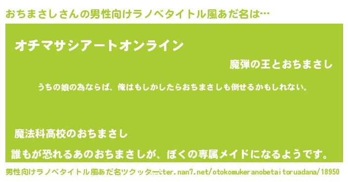 | 女子向けラノベタイトル風あだ名 | 『おちまさしの婚約者』 |
