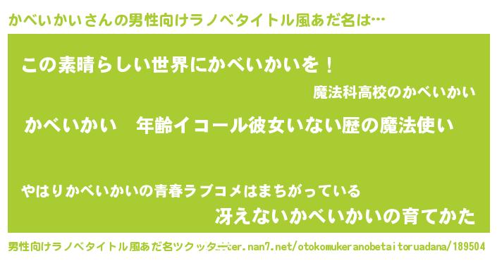 | 胡散臭い通販商品みたいなあだ名 | 『あなたにだけ特別に提供する世界で10本だけ現存している希少なブランデー…その名も「かべいかい」』 |