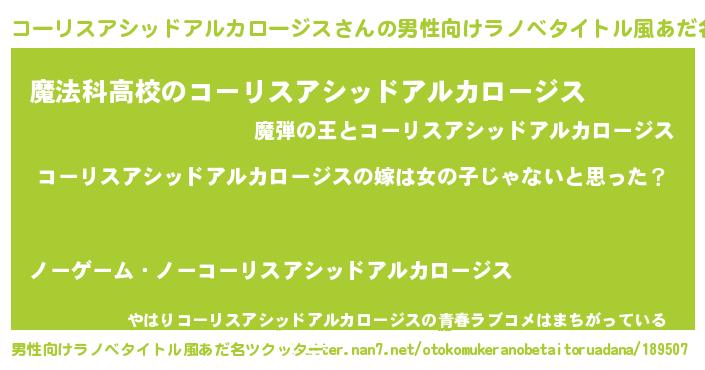 | 女子向けラノベタイトル風あだ名 | 『コーリスアシッドアルカロージス様がみてる』 |