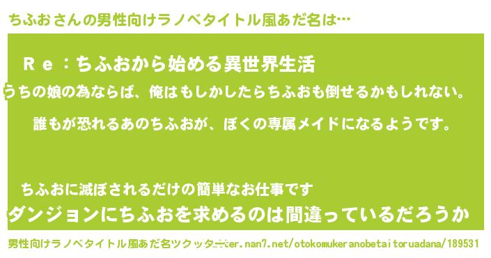 | 胡散臭い通販商品みたいなあだ名 | 『来世でも幸せになれる健康食品…その名も「ちふお」』 |
